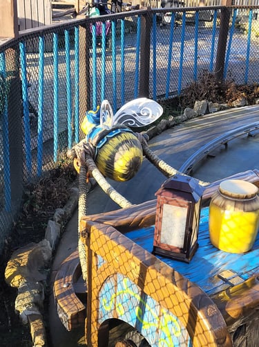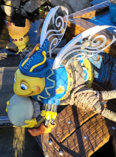 Opmerking: In 2000 is bij de overname door studio 100 de attractie veranderd van een bijen thema naar het kabouter Plop thema.