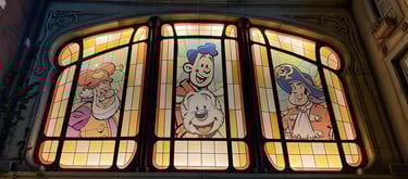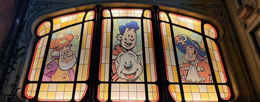 De carrousel bekeken we vanaf een afstand, maar ook deze Wood Design-attractie is tot in detail afgewerkt. Zelfs in het plafond vind je kleine Samson & Gert-stripjes verstopt. Details waar je blij van wordt.